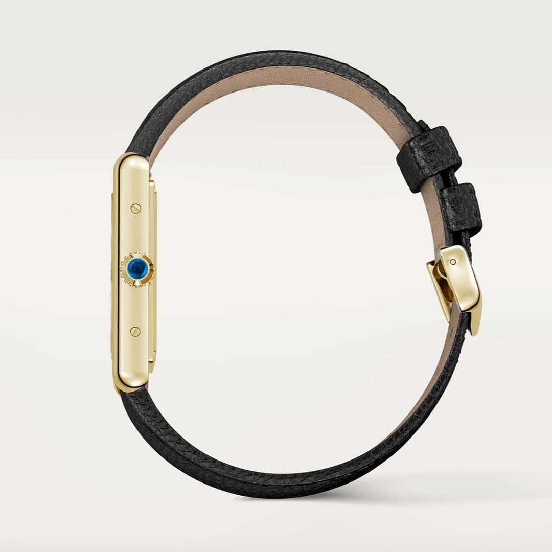 Catier Tank Cuir Noir cadran gold jaune